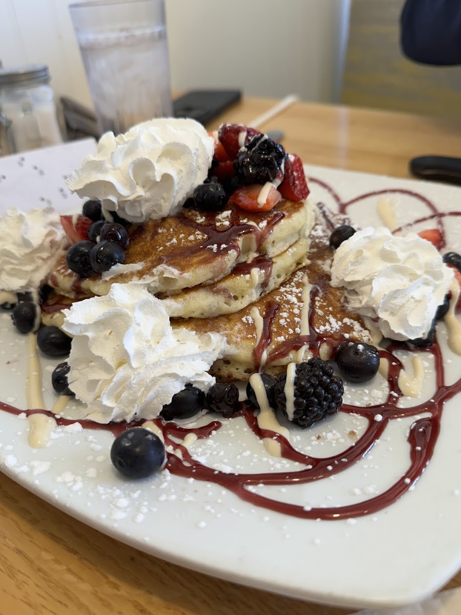 And for those with a sweet tooth, Eggstablished offers a variety of pancakes and French toast options that’ll make your mouth water. The “Berry Bliss Pancakes” are particularly popular, with their fluffy texture and berry topping that adds just the right amount of sweetness to start your day off right. Pair it with a cup of freshly brewed coffee or a refreshing juice to complete your meal.